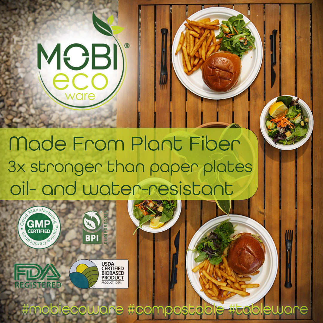 MOBI Ecoware 10" Biodegradable Bagasse Heavy-Duty Disposable Dinner Plates (500-Pack)
