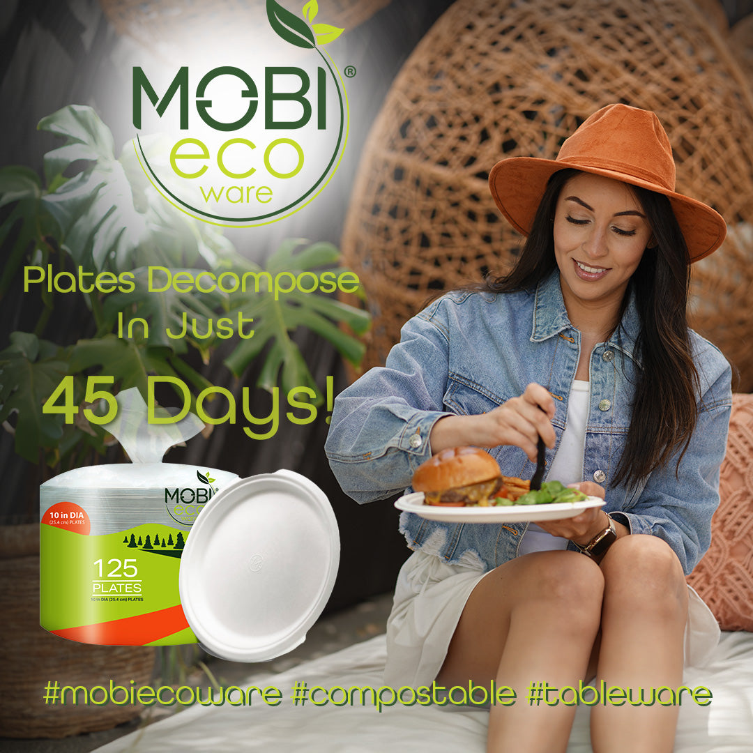 MOBI Ecoware 10" Biodegradable Bagasse Heavy-Duty Disposable Dinner Plates (25-Pack)